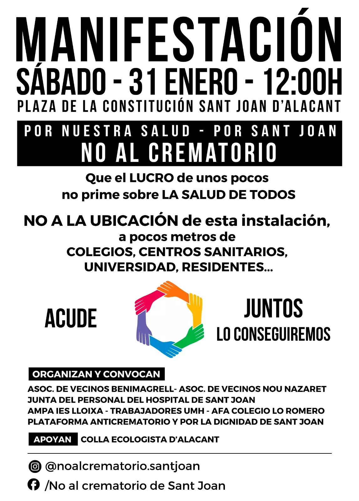 Por último, anima a la ciudadanía a mostrar su rechazo a la instalación del crematorio en la manifestación el próximo sábado, 31 de enero, a las 12 en la plaza de la Constitución.