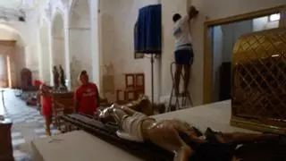 Los residentes retiran escombros, andamios y basura del templo para poder celebrar la primera misa en 15 años