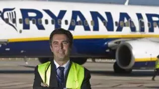 Santiago Martínez-Cava posa frente a un avión de Ryanair el pasado viernes, en El Altet. / antonio amorÓS