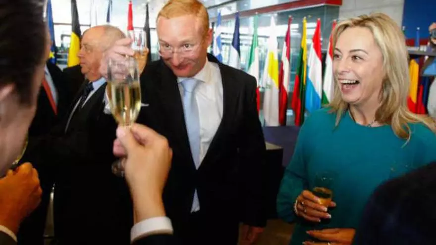 Antonio Campinos brinda con la alcaldesa de Alicante, Sonia Castedo, ayer en la Oami. / jose navarro