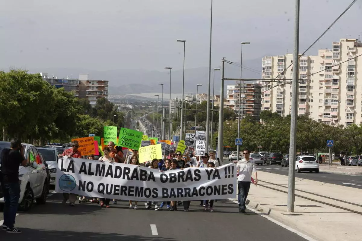 Protesta de las familias del colegio La Almadraba contra los barracones
