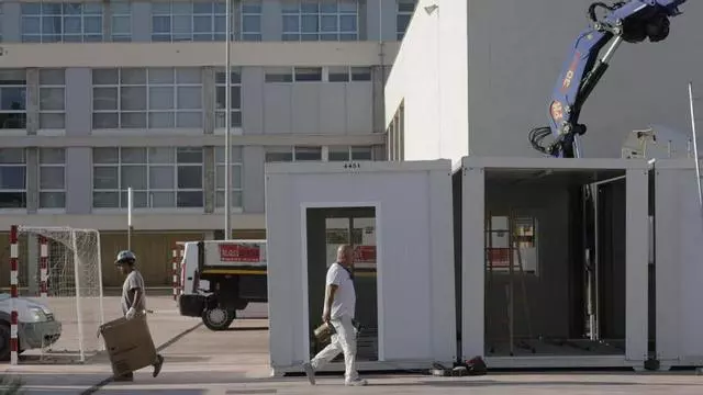 Barracones en el patio del Instituto Radio Exterior para el colegio La Almadraba / RAFA ARJONES