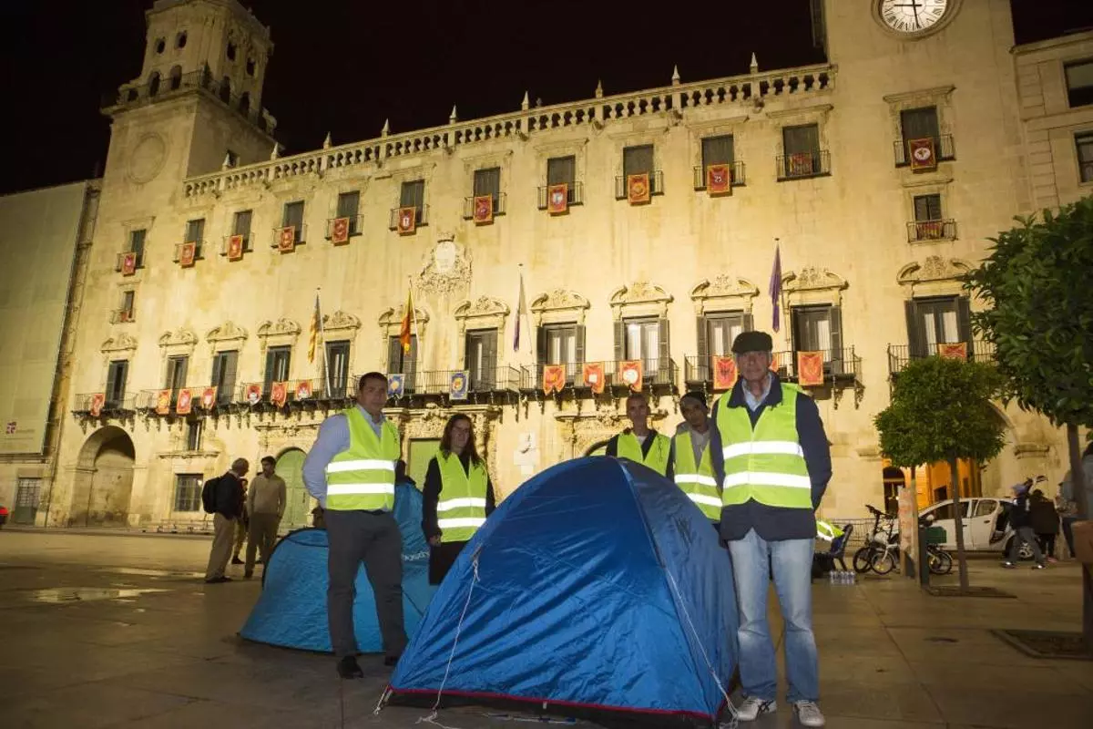 Acampada protesta de personas sin hogar frente al Ayuntamiento de Alicante