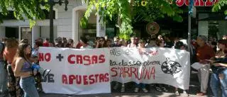 Una concentración en la Rambla de Alicante contra la presencia de casas de apuestas en los barrios, en octubre de 2019. / carlos bartual