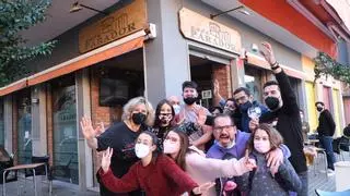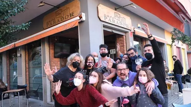 Alegría a las puertas del bar El Parador de Petrer, que vendió 120 décimos del segundo premio que regó de millones también a Pinoso. / AXEL ÁLVAREZ