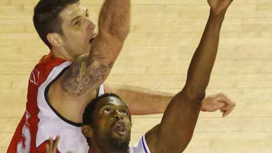Asselin intenta capturar un rebote ante Barnes. / ACBMEDIA