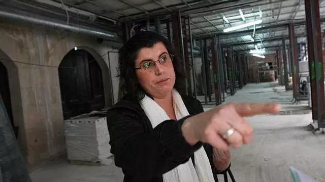 Maite Ripoll, del Patronato de la Vivienda, en la planta baja del edificio donde se ubican la salas. / ISABEL RAMÓN