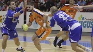 Un jugador del Torrevieja intentado un ataque ante la defensa de Vukas / HERALDO