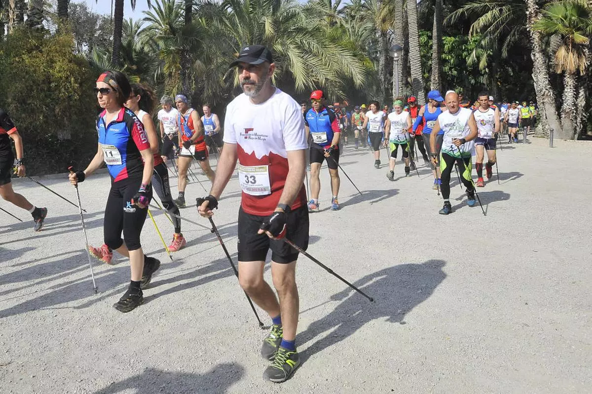 Elche acogió ayer una prueba de la Copa de España y el II Campeonato Autonómico de Marcha Nórdica que se desarrolló en el entorno del Parque Municipal. La competición contó con los mejores especialista de todo el país y resultó muy atractiva para los espectadores que se vieron sorprendidos por esta modalidad deportiva que cada día tiene más adeptos en la provincia de Alicante. La prueba, organizada por el Club Marcha Nórdica Costa Blanca Elx, discurrió por un trazado de 14 kilómetros. Por la mañana se ofrecieron distintas ponencias en el Centro de Congresos.