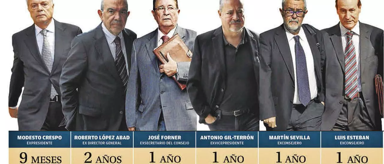En esta causa, una de las siete abiertas por la gestión de la CAM, se juzgó y condenó el pago injustificado a Crespo de unos emolumentos (300.000 euros al año) camuflados como dietas cuando su cargo no era remunerado. Una actuación que el Tribunal Supremo tachó de «ideación criminal» por la que, además de a Esteban, se condenó al exdirector general de la caja Roberto López a dos años de prisión y a los exconsejeros José Forner, Antonio Gil-Terrón y Martín Sevilla a uno, además de multas. ¿El delito? Apropiación indebida.