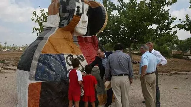 El alcalde comprobando el estado de las damas de fibra de vidrio que, finalmente, han sido instaladas en La Alcudia / DIEGO FOTÓGRAFOS