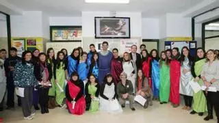 Alumnos y docentes del "Montserrat Roig" que participaron ayer en la lectura y escenificación. / DIEGO FOTÓGRAFOS