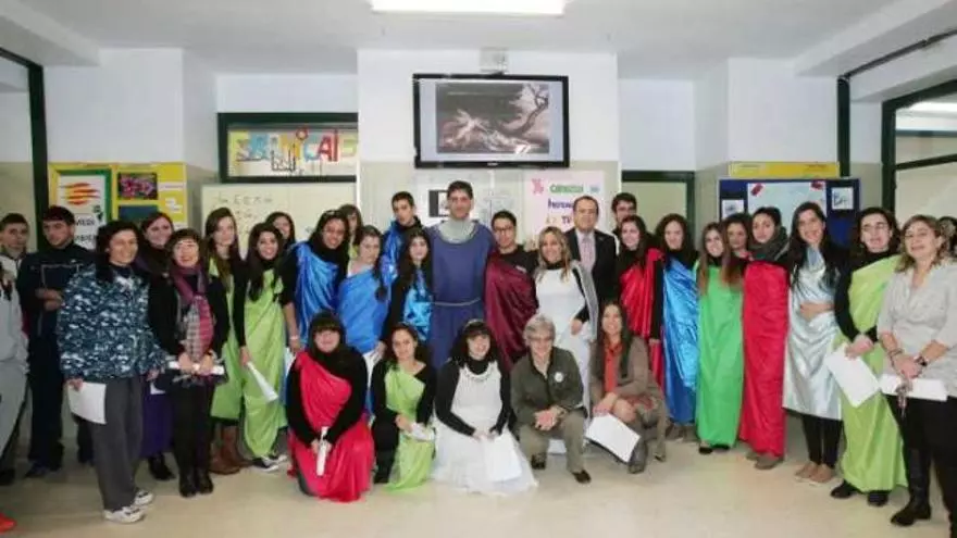 Alumnos y profesores del IES Montserrat Roig, al igual que ocurrió en otros centros de Elche y la provincia, se sumaron ayer a un acto reivindicativo en defensa de las lenguas y cultura clásicas