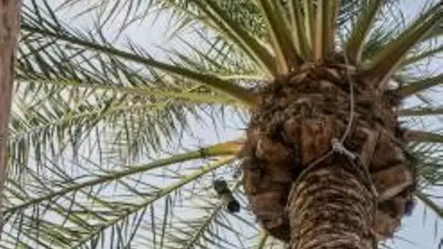 Uno de los participantes que compitieron en la cuarta edición del torneo de trepa de palmera. / ANTONIO AMORÓS
