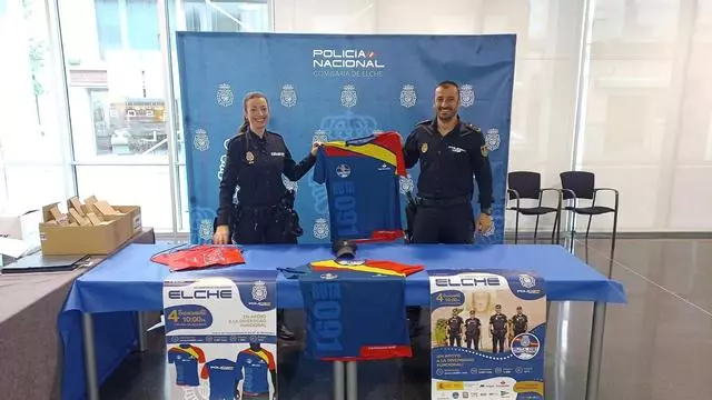 Agentes de la Policía Nacional con las camisetas y dorsales para la carrera benéfica en Elche de este domingo / INFORMACIÓN