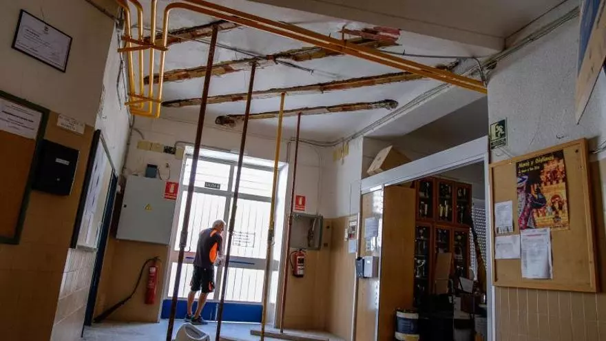 Cabe recordar que fueron los propios técnicos de la Conselleria quienes emitieron un informe a finales del curso pasado advirtiendo de los daños estructurales que presenta el torreón central de este edificio construido en 1936, y del peligro que entraña utilizar las escaleras por las que se accede a las aulas y a la tercera planta donde se imparten las clases de apoyo y se presta el servicio psicopedagógico. De ahí que Educación optara por la fabricación e instalación, en los dos patios del colegio, de sendas escaleras prefabricadas provisionales. De este modo profesores y alumnos podrían acceder a las clases de forma segura sin pasar por el corredor central del edificio, que es donde se encuentra el recibidor de entrada, los cuatro aseos y las escaleras por las que se llega a los pasillos distribuidores de las dos alas.