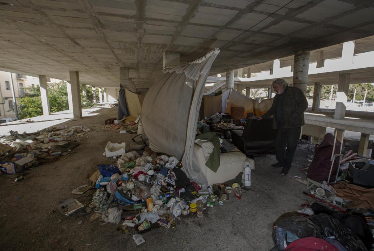 Sin techo viven en la estructura de un edificio