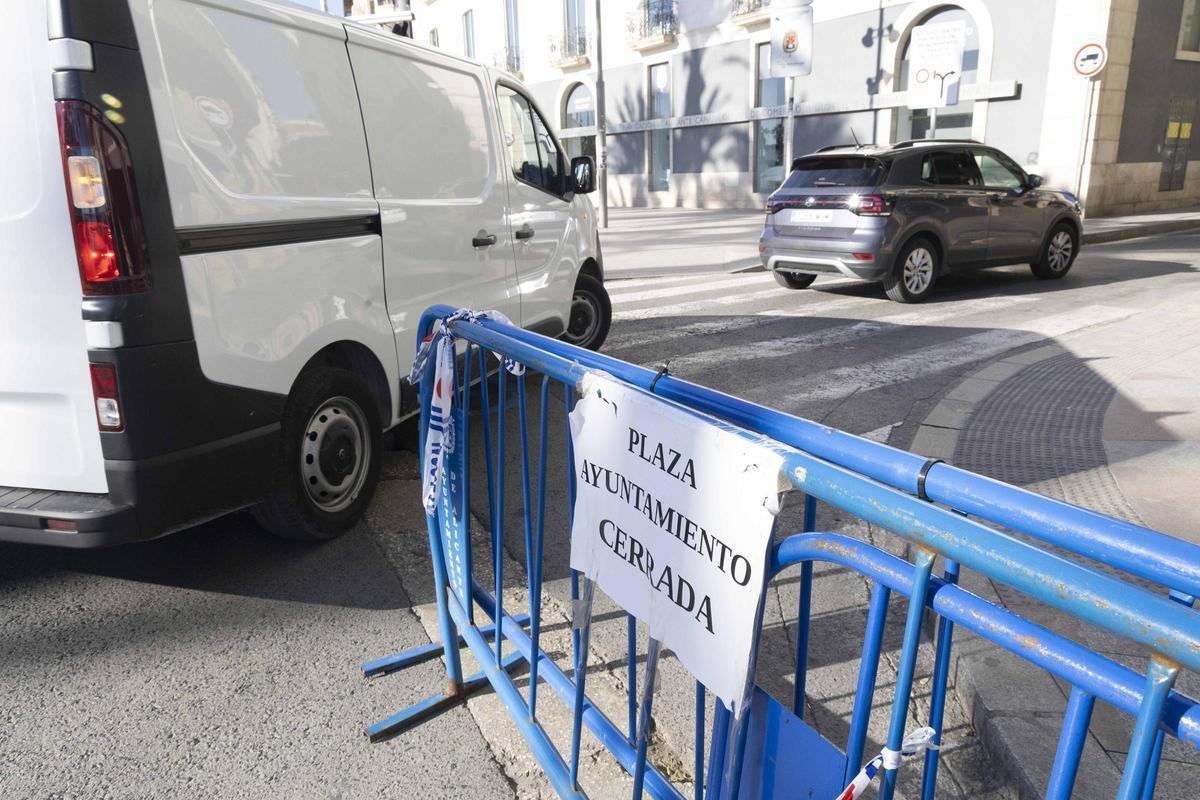 Nueva señalización que advierte del cierre al tráfico a la plaza del Ayuntamiento