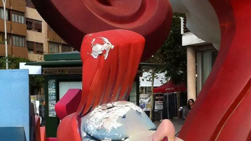 Sobre las 8.00 horas, una hora antes de que el jurado comenzase la visita a los monumentos, un grupo de jóvenes han causado daños a varios ninots y han tirado una valla que ha caído sobre uno de los monumentos que representa a una mujer alicantina, según ha explicado María Ángeles Candela, una festera de esta hoguera, quien ha añadido que los gamberros presentaban síntomas de embriaguez.