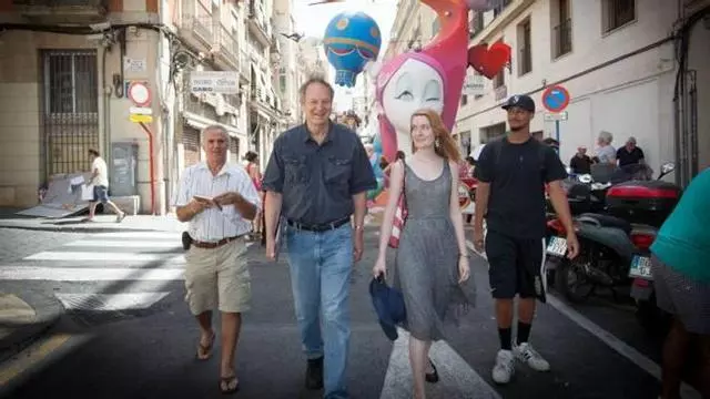 Estudiantes americanos de un curso de creación literaria visitan las Hogueras para conocer la cultura y poder aplicarla a sus trabajos -La altura de los monumentos les impresiona mientras la Cremà les desconcierta hasta afirmar que «es una lástima»