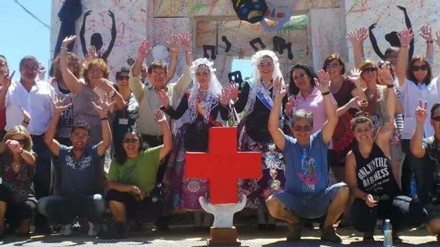 La hoguera de este año, realizada por los propios participantes, está representada por diferentes figuras de las bellas artes como la literatura, la música, la danza, el cine la, pintura, la escultura y la arquitectura. En la realización de este monumento artesanal, iniciado en el mes de marzo, han participado 15 usuarios, con el apoyo de voluntarios y técnicos de Cruz Roja.