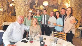 Tanto celebraron los compañeros de mesa de Jorge su éxito detectivesco que invitaron a la pareja a su mesa, en la que se encontraban María Jesús Gilabert, Paco Verdú, Silvia Campillo, Santi Pastor y Silvia Sempere, que compartieron entre risas un digestivo herbero.