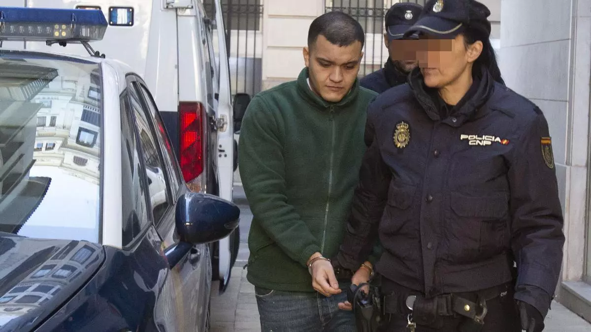 El acusado declarado culpable es trasladado por la Policía al juicio. / PILAR CORTÉS